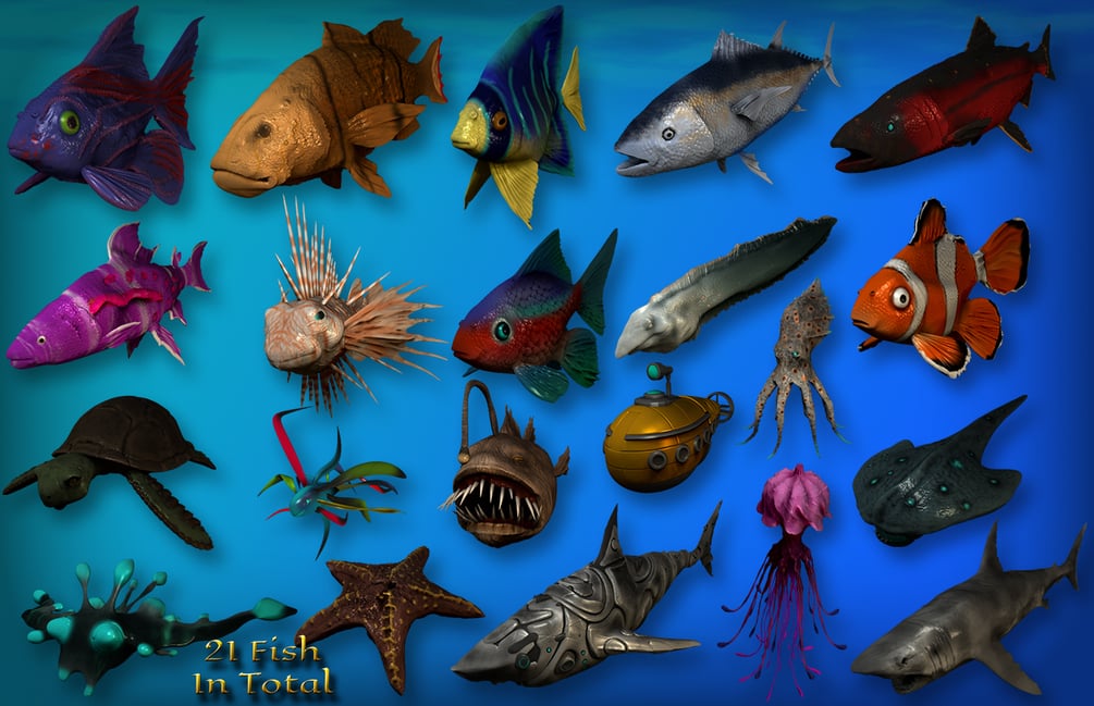 Make your next underwater project with a splash. The stylized fish pack is a collection of over 21 fishes and sea life that can help you create a dynamic set of underwater dioramas, environments or concepts.